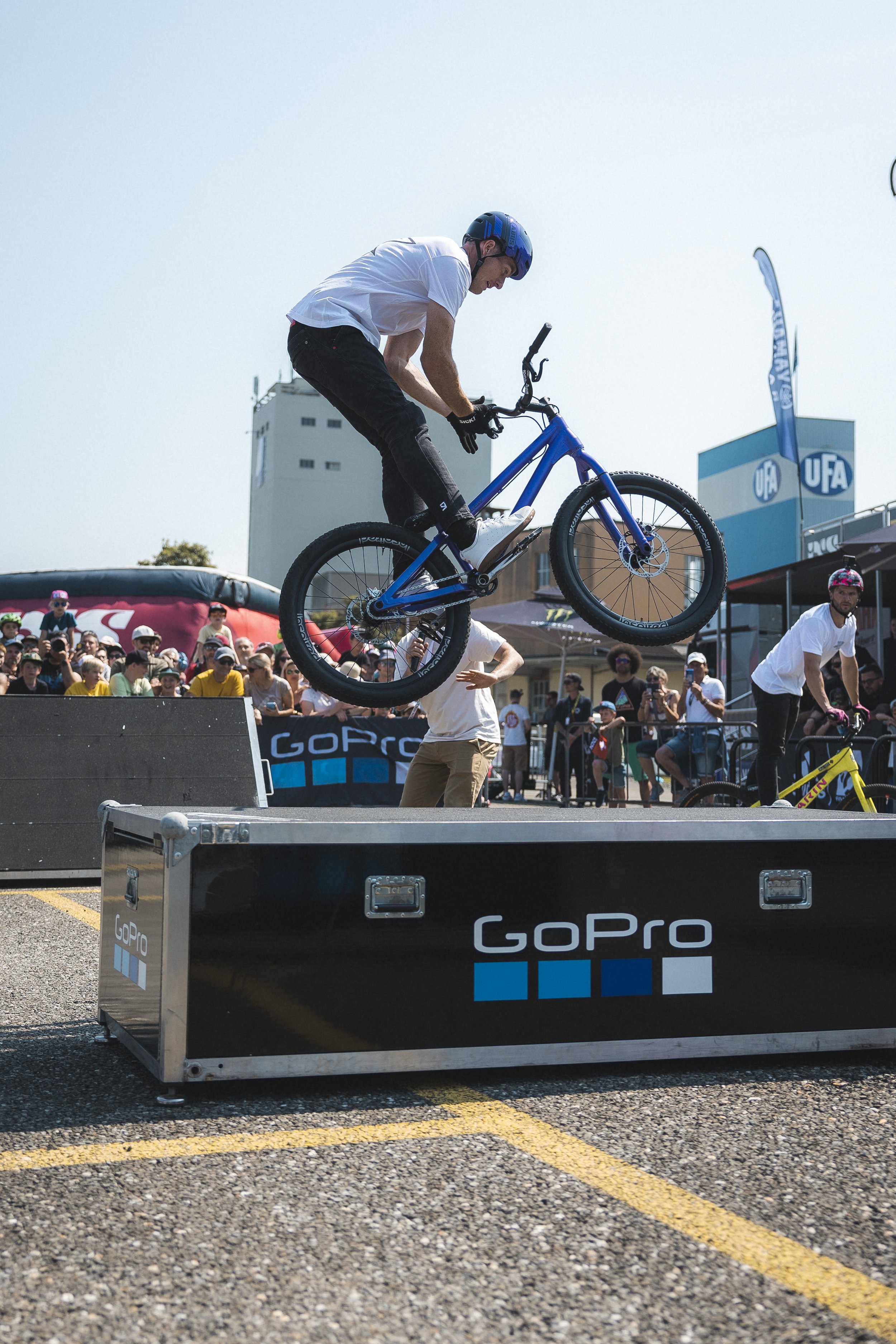 John Langlois is quickly becoming a crowd favourite as he takes the chance to show off his BMX background, and the new generation of street trials, as he combines logic defying tail whips and barspins into some of the more traditional street trials moves…